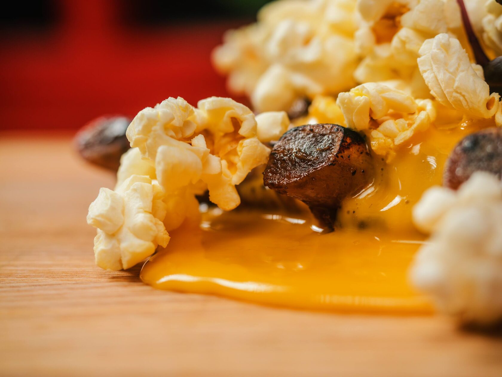 А теперь — немного безумия. Но того самого, гениального. Вы ведь помните тот неповторимый вкус и аромат только что приготовленного попкорна в кинотеатре? Маслянистый, сырный, с этой воздушной, почти невесомой текстурой, которая тает на языке. Мы подумали: а можно ли перенести эти ощущения на серьезное мясное блюдо? Оказалось, что не только можно, но и нужно!